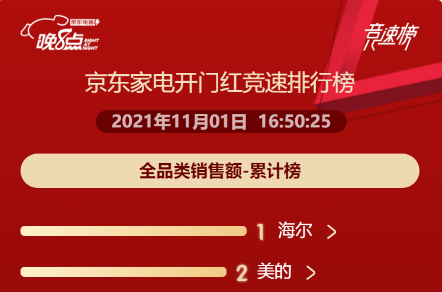 - 雙11京東競速榜前三搶先看:海爾智家、美的、小米