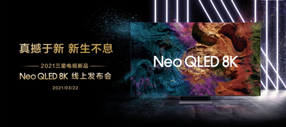 - 3月22日晚20:00,2021三星電視新品Neo QLED 8K線上發布會隆重舉辦,此次發布會以“真撼于·新 新生不息”為主題,以提升人們的觀感體驗為使命,呈現三星產品和科技創新的成果。