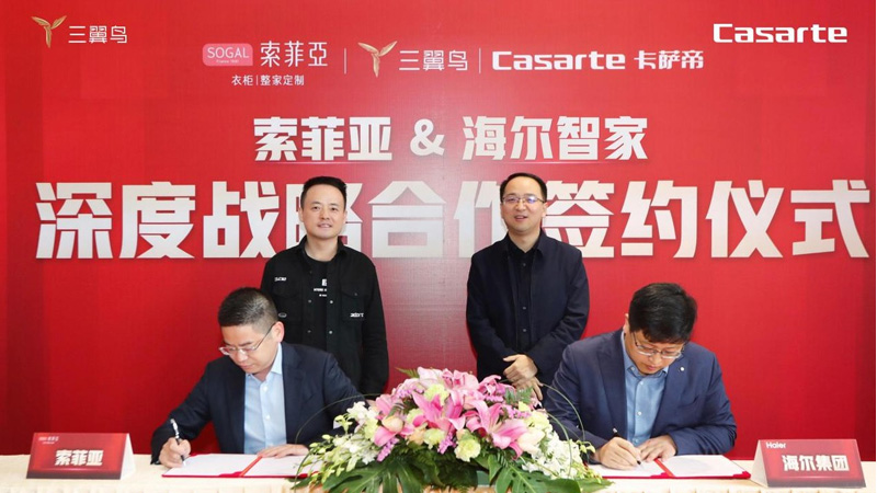 - 而號角在1月12日被吹響。當天,海爾智家副總裁、中國區總經理徐萌與索菲亞總裁王兵、副總裁楊鑫在廣州達成了深度戰略合作。此次,智能家居、定制家裝領域兩大頭部品牌攜手,將圍繞品牌互建、生態融合