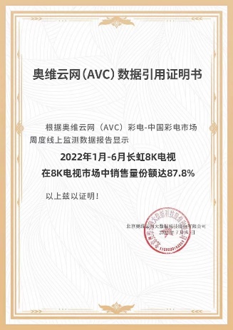 - 長虹8K電視市場占有率87.8%,實力領跑8K電視賽道