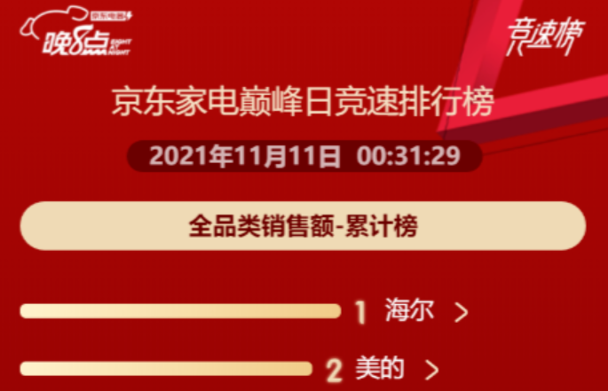 - 雙11京東競速榜前三搶先看:海爾智家、美的、小米