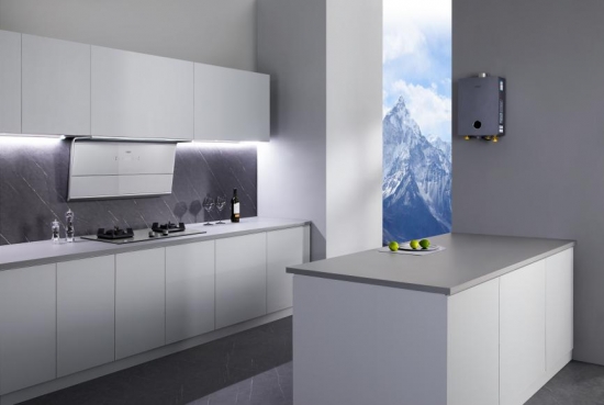 致極PRO套系包括超薄低吸油煙機(jī)W8、智能烹飪?nèi)細(xì)庠頥9及A3L小體積燃?xì)鉄崴魅町a(chǎn)品,其以極光銀玻璃面板的煙灶組合,搭配星空灰的熱水器,于致簡中彰顯高雅,契合當(dāng)下多樣化裝修風(fēng)格。