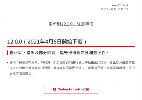 故事要從前天,也就是4月6日說(shuō)起。當(dāng)天,任天堂為Switch主機(jī)推送了12.0.0版本固件。