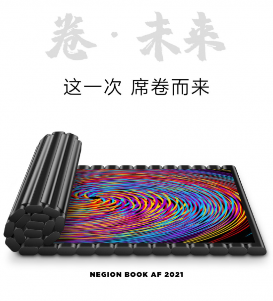 今天,聯想則宣布了一款竹簡造型的可卷曲筆記本NEGIONBOOK,采用獨特的內卷設計,可以拓展更多的使用場景,讓用戶在加班、回釘釘、親子早教等場景下更為高效。