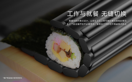 此外,得益于顛覆性的內卷設計,這款筆記本還可以進行壽司的卷制,方便用戶隨時進行工作餐與加班餐的烹制,免去前往餐廳、等待外賣的痛苦,讓寶貴的工作時間不被吃飯侵占。