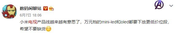 - · 漲價大潮來襲,消息稱小米電視數字系列將推出 OLED 新品