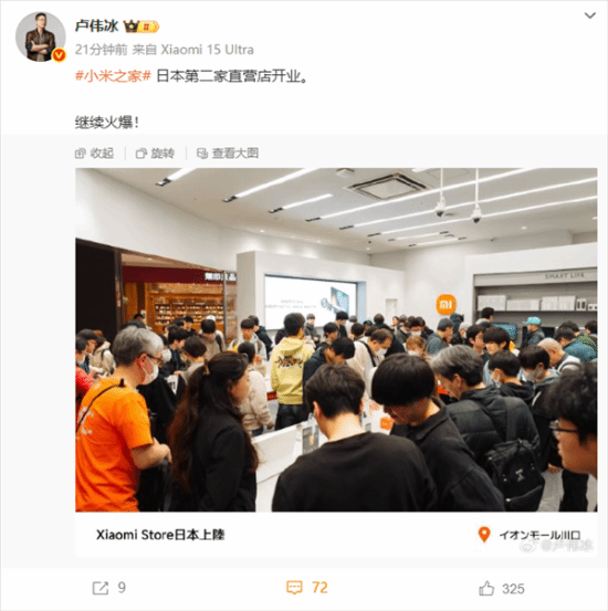 - 4月5日,小米品牌總經理盧偉冰對外公布了一則消息:小米在日本開設的第二家直營店正式營業,現場吸引了大量消費者前來體驗。從發布的圖片水印來看,這家新店位于埼玉縣川口市的永旺夢樂城。