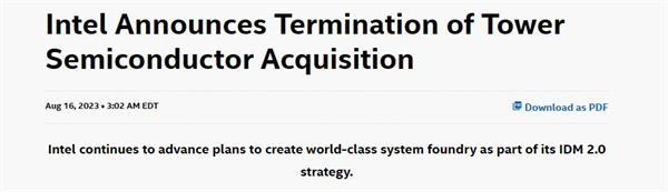 - 官宣!英特爾終止收購高塔半導(dǎo)體 其代工之路或?qū)⒂龃?/a>