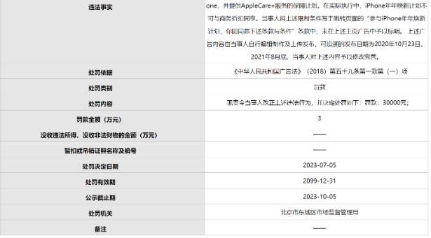 - 蘋果因未標明“手機年年煥新不可與商務折扣同享”被罰3萬元