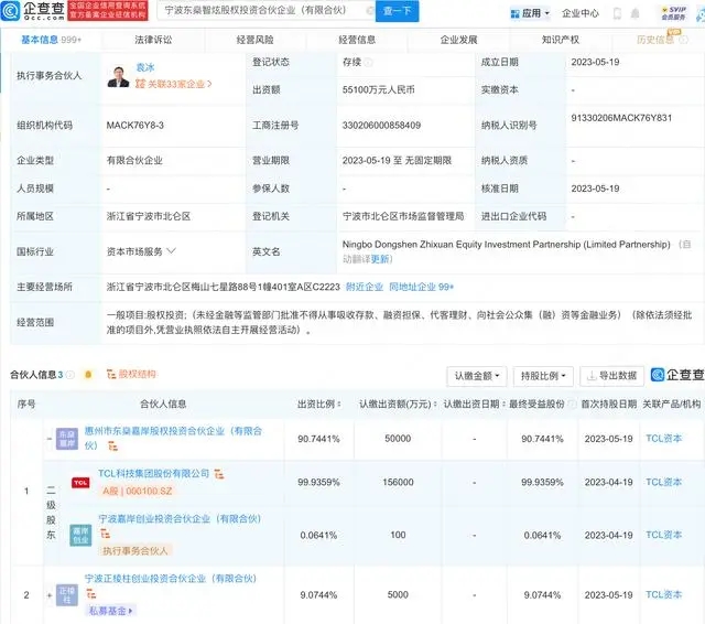 - TCL科技于寧波投資設立股權投資企業,注冊資本超5億