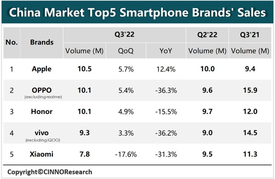 - 2022年,手機終端市場烏云壓頂。 CINNO Research統(tǒng)計數(shù)據(jù)顯示,今年第三季度,中國大陸市場智能手機銷量約為6220萬臺,同比下降20.8%,是2015年以來最差的“第三季度”。 萎靡不