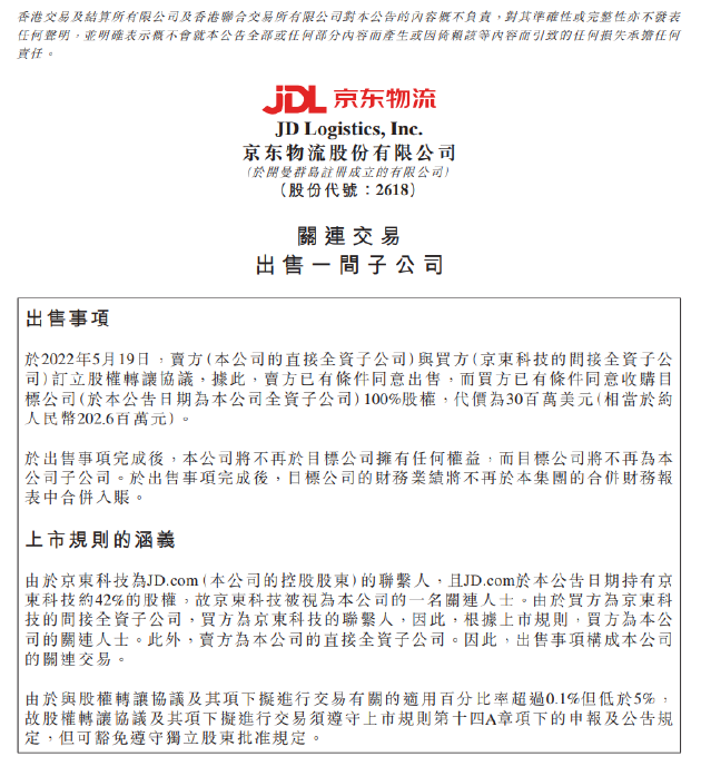 - 京東物流:以2.03億元向京東科技出售京東國際融資租賃100%股權