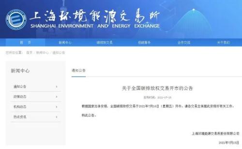 - 剛剛,上海環境能源交易所發布公告,根據國家總體安排,全國碳排放權交易于7月16日(星期五)開市。 1 全國碳排放權交易市場準備就緒 7月14日,生態環境部相關負責人表示,下一步,將穩步擴