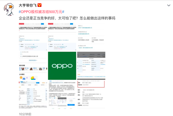 - “OPPO股權被凍結500萬元”沖上熱搜 網友:企業應該正當競爭