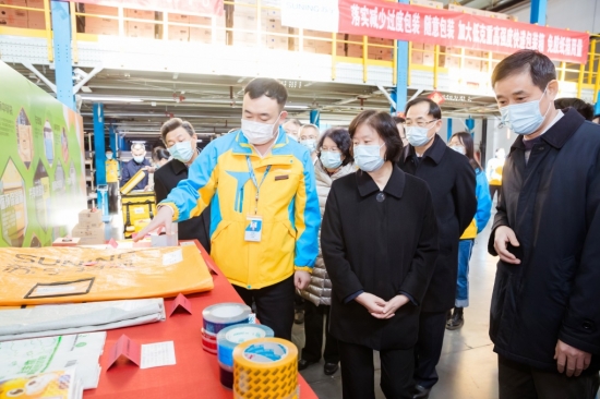 全國人大常委會調研組參觀調研北京蘇寧快遞包裝綠色轉型