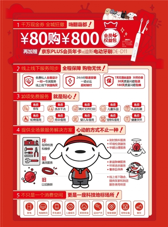 關(guān)注“京東電器超級體驗(yàn)店合肥店”微信公眾號,參與開業(yè)預(yù)約預(yù)存活動,僅需預(yù)存80元,就可以得到800元的現(xiàn)金券大禮包,并將加贈京東PLUS會員年卡或迪斯電動牙刷DE-D11一支。還有更多福利等著你解鎖。