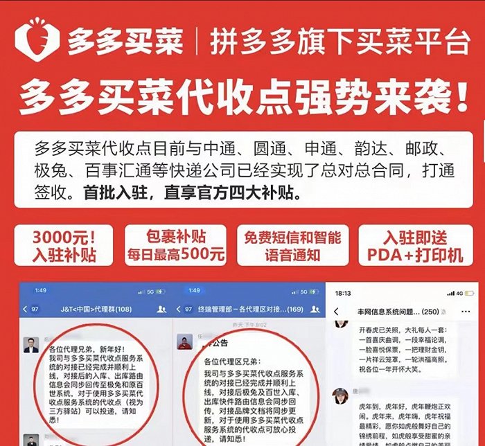多多買菜快遞代收業務被叫停