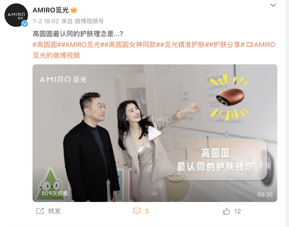 資料顯示,AMIRO覓光是深圳市宗匠科技有限公司旗下品牌,主要生產美容儀產品,其曾邀請明星高圓圓代言。