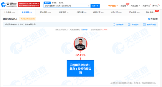 樂視網被強制執行3.71億 賈躍亭為該公司最大股東