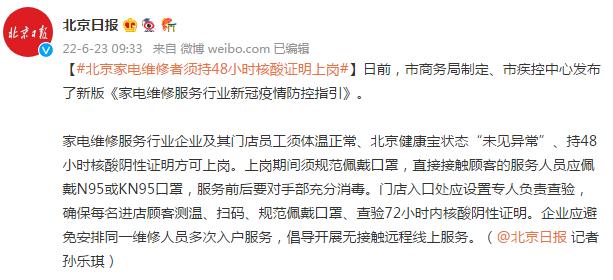 北京家電維修者須持48小時(shí)核酸證明上崗