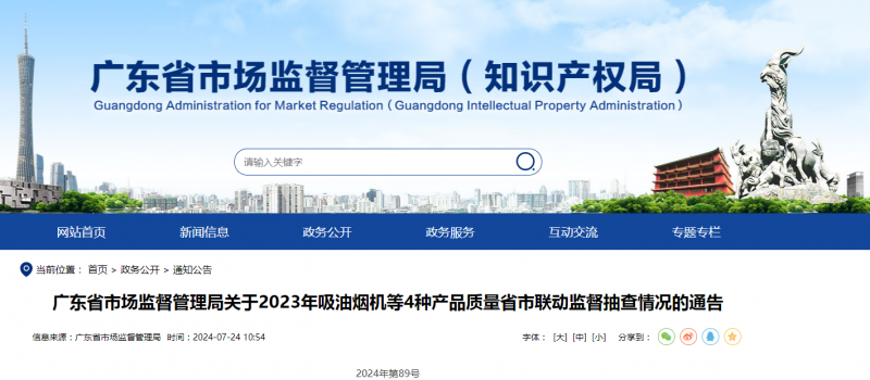 - 廣東省市場(chǎng)監(jiān)督管理局關(guān)于2023年吸油煙機(jī)等4種產(chǎn)品質(zhì)量省市聯(lián)動(dòng)監(jiān)督抽查情況的通告