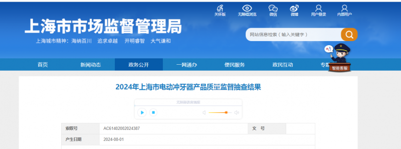 - 2024年上海市電動(dòng)沖牙器產(chǎn)品質(zhì)量監(jiān)督抽查結(jié)果