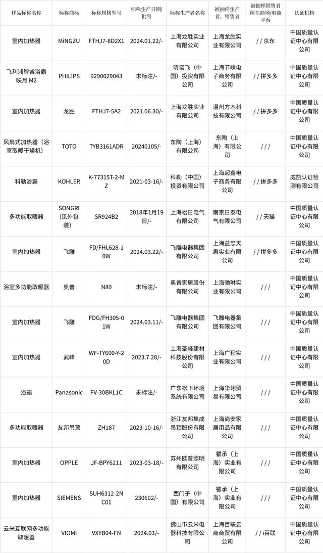 - 2024年上海市浴霸(暖風(fēng)機(jī))產(chǎn)品質(zhì)量監(jiān)督抽查結(jié)果