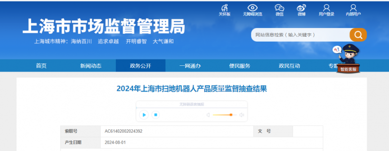 - 2024年上海市掃地機(jī)器人產(chǎn)品質(zhì)量監(jiān)督抽查結(jié)果