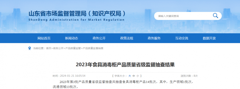 - 【山東】2023年食具消毒柜產品質量省級監督抽查結果