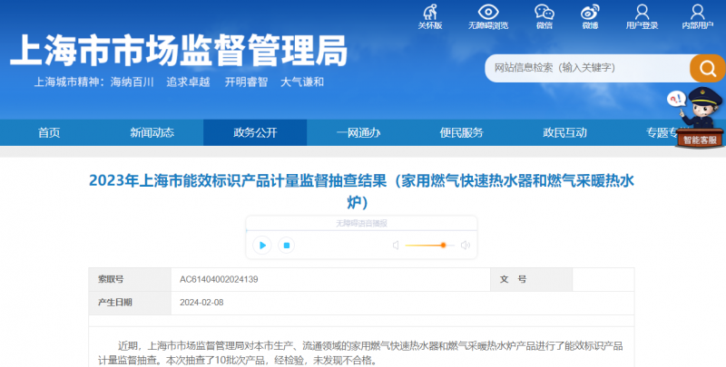 - 2023年上海市家用燃氣快速熱水器和燃氣采暖熱水爐產品質量監督抽查結果