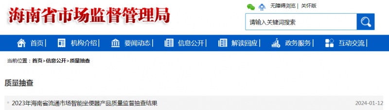 - 2023年海南省流通市場智能坐便器產品質量監督抽查結果
