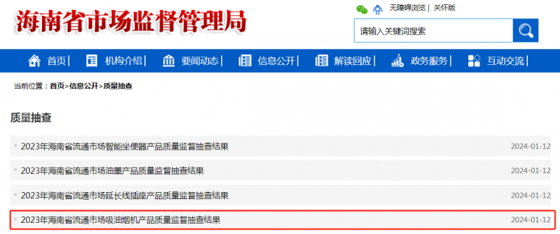 - 2023年海南省流通市場吸油煙機產品質量監督抽查結果