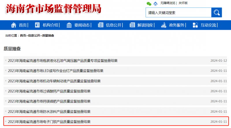 - 2023年海南省流通市場電子門鎖產品質量監督抽查結果