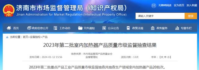 - 「濟南」2023年第二批室內加熱器產品質量市級監督抽查結果