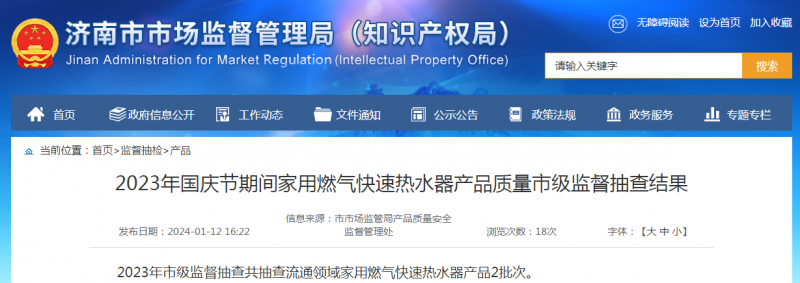 - 【濟南】2023年國慶節期間家用燃氣快速熱水器產品質量市級監督抽查結果