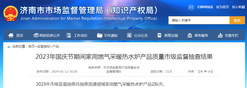 - 【濟南】2023年國慶節期間家用燃氣采暖熱水爐產品質量市級監督抽查結果