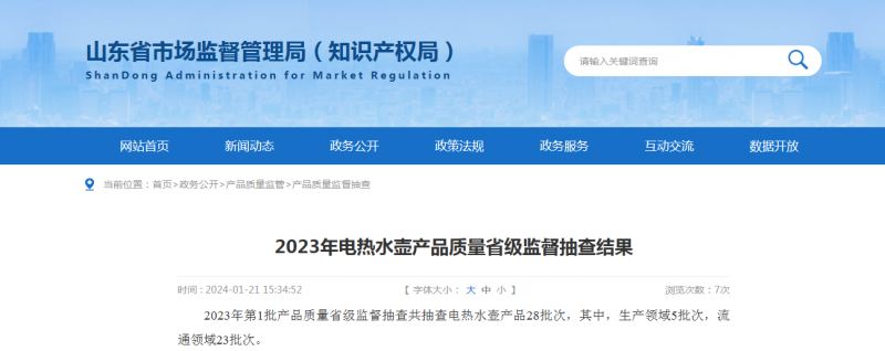 - 【山東】2023年電熱水壺產品質量省級監督抽查結果