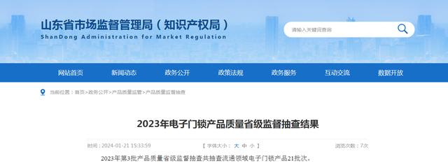 - 【山東】2023年電子門鎖產品質量省級監督抽查結果