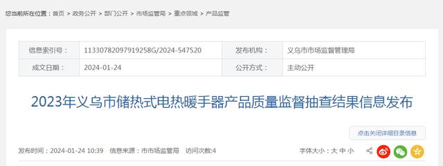 - 2023年浙江省義烏市儲熱式電熱暖手器產品質量監督抽查結果