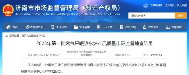 - 【濟南】2023年第一批燃氣采暖熱水爐產品質量市級監督抽查結果