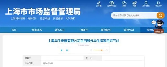 - 上海華生電器有限公司召回部分華生牌家用燃氣灶 分享