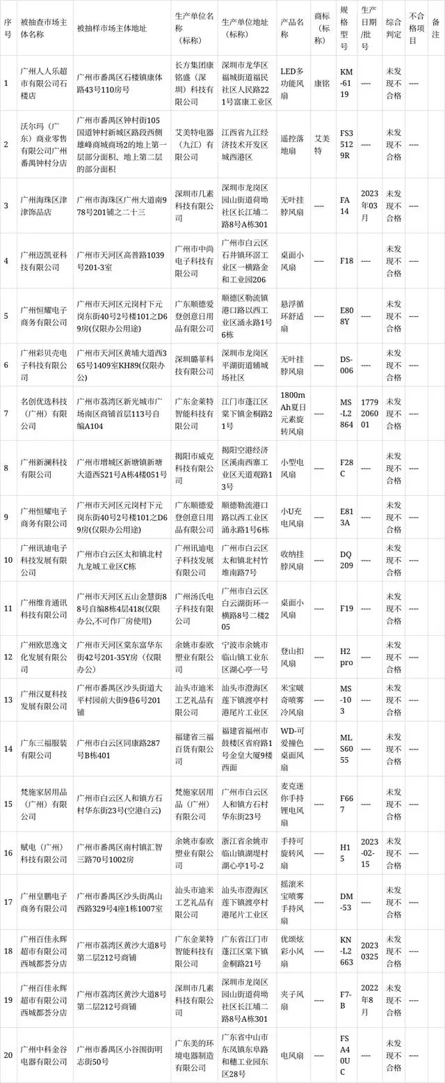 - 2023年廣州市電風(fēng)扇產(chǎn)品質(zhì)量監(jiān)督抽查結(jié)果