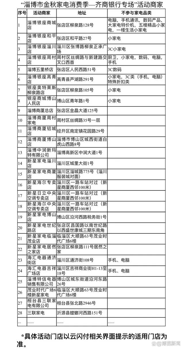 - 9月16日—10月7日,由市商務(wù)局指導(dǎo),齊商銀行將聯(lián)合淄博商廈、山東新星集團、淄博銀座商城等企業(yè)共同開展“淄博市金秋家電消費季——齊商銀行專場”消費補貼活動