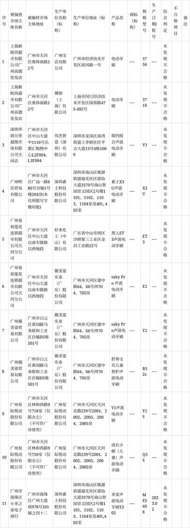 - 2023年廣州市電動牙刷產(chǎn)品質(zhì)量監(jiān)督抽查結(jié)果