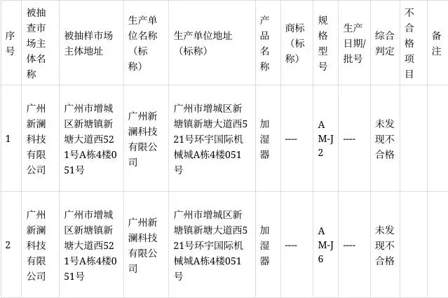 - 2023年廣州市加濕器產(chǎn)品質(zhì)量監(jiān)督抽查結(jié)果