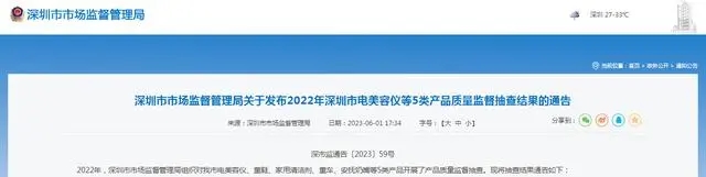 - 深圳市市場監管局發布2022年深圳市電美容儀等5類產品質量監督抽查結果