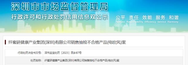 - 纖蜜研健康產業集團(深圳)有限公司銷售抽檢不合格產品(電吹風)案