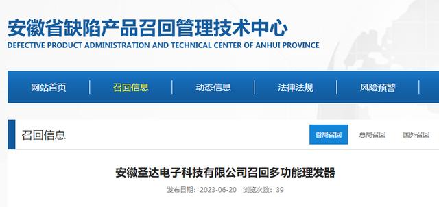 - 安徽圣達電子科技有限公司召回多功能理發器