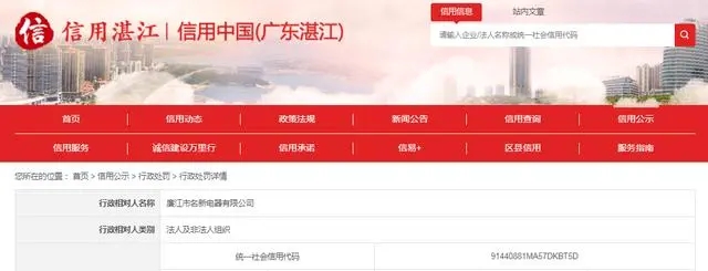 - 近日,信用中國(廣東湛江)網站發布一條處罰信息,涉及廉江市名新電器有限公司,該公司生產銷售不合格電熱水壺。具體信息如下: 分享
