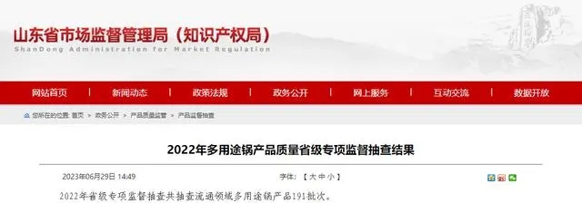 - 山東省市場監督管理局公布2022年多用途鍋產品質量省級專項監督抽查結果